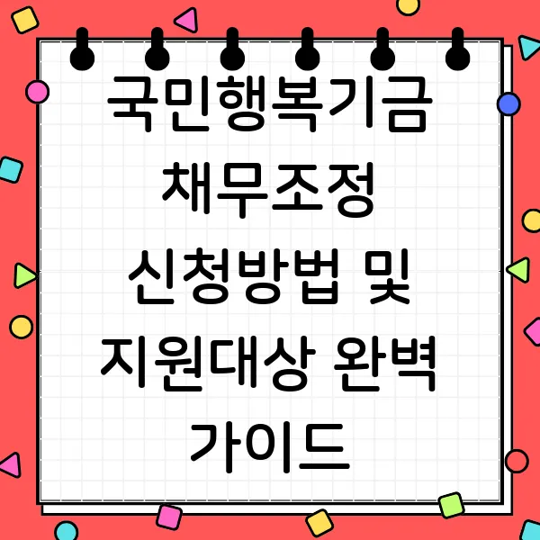 힘든 경제 상황 속에서 빚 때문에 밤잠 설치시는 분들 많으시죠? 혹시 장기 연체로 신용 불량 위기에 놓여 계신가요? 국민행복기금 채무조정 제도가 희망의 빛이 되어드립니다! 지원 대상, 신청 방법, 2025년 개정된 최신 정보까지 완벽하게 알려드릴게요!