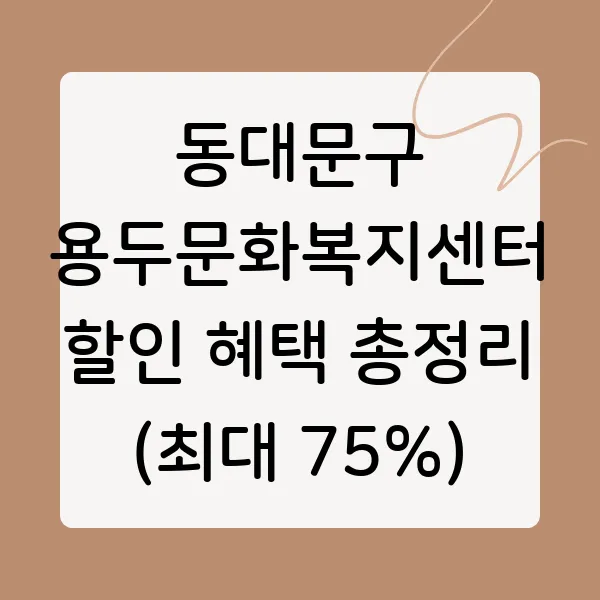 동대문구 용두문화복지센터에서 제공하는 놀라운 할인 혜택! 최대 75%까지 감면받을 수 있는 다양한 프로그램들을 만나보세요. 용두문화복지센터 할인, 용두문화복지센터 감면, 동대문구 문화센터, 용두동 문화센터 등의 키워드로 쉽게 검색하고, 지금 바로 혜택의 주인공이 되어 보세요! 풍성한 문화생활을 위한 절호의 찬스를 놓치지 마세요!