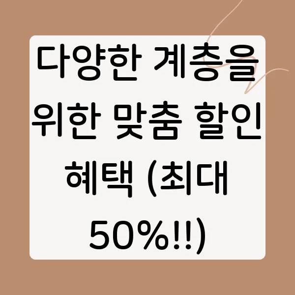 다양한 계층을 위한 맞춤 할인 혜택 (최대 50%!!)