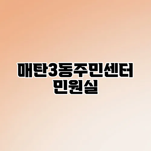 아무래도 주민센터 민원실을 방문하기 전에 위치, 운영 시간, 준비물 등 알아야 할 사항들이 많지요. 매탄3동 주민센터를 이용할 때 헷갈리지 않도록 꼭 숙지해야 할 정보를 안내해 드릴게요.