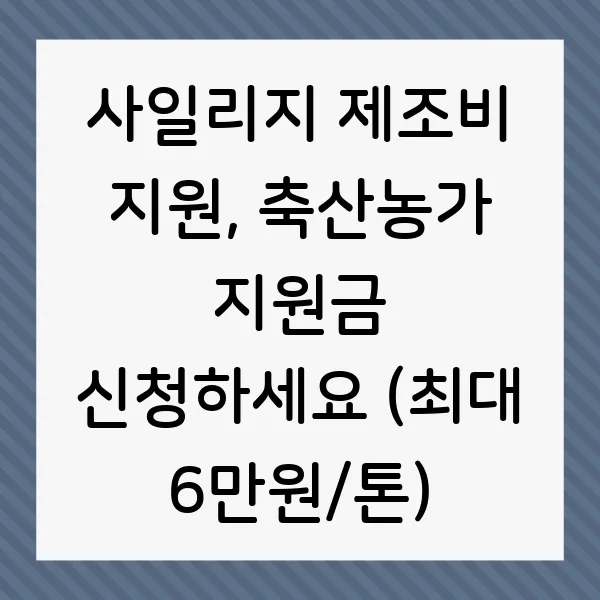 축산농가 여러분, 주세요~! 사료값 폭등에 한숨만 쉬고 계신가요? 걱정 마세요! 정부에서 농가 부담 완화를 위해 사일리지 제조비를 최대 6만원/톤까지 지원해준다는 꿀팁! 지금 바로 신청하고 사료비 절감 효과 톡톡히 누려보세요! 조사료, 사일리지, 지원금, 축산농가, 농업정책 등의 키워드를 중심으로 자세한 정보를 알려드립니다.