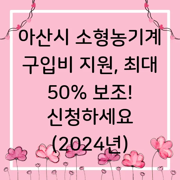 아산시 농업인이라면 주목! 농업 경쟁력 강화를 위한 핵심 지원 사업, 소형농기계 구입비 지원 사업을 소개합니다. 최대 50%까지 지원되는 파격적인 혜택! 농가 소득 증대와 스마트 농업으로의 도약을 꿈꾸는 당신, 지금 바로 신청하세요! 아산시 농기계 지원, 농업 보조금, 스마트팜, 농업 경쟁력 강화 등 핵심 키워드를 통해 사업의 중요성을 강조하고, 농업인들의 참여를 독려하고자 합니다.