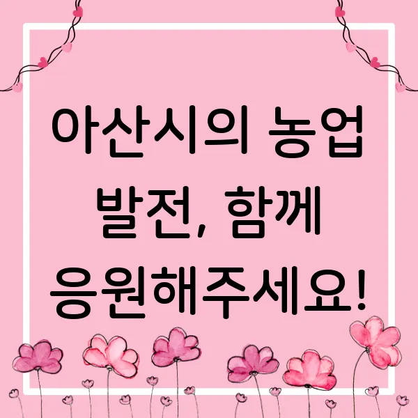 아산시는 농업의 지속가능한 발전을 위해 끊임없이 노력하고 있습니다. 친환경 농업 육성, 농촌 체험 관광 활성화, 귀농귀촌 지원 등 다양한 정책을 통해 미래 세대에게 물려줄 건강한 농촌을 만들어 나가겠습니다. 아산시의 농업 정책에 많은 관심과 응원 부탁드립니다.