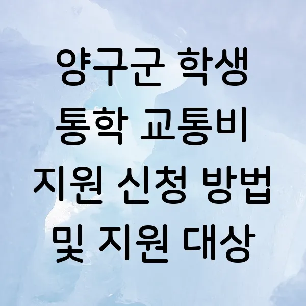 교육비 부담 완화?! 학생들의 꿈을 응원하는 양구군의 든든한 지원! 양구군에 거주하는 학생이라면 누구나 주목하세요! 유치원부터 고등학교까지, 학교가 멀어도 걱정 마세요~ 양구군 학생 통학 교통비 지원 사업이 여러분의 꿈을 힘차게 응원합니다! 지원 대상, 신청 방법, FAQ까지, 지금 바로 확인하고 혜택 받으세요!