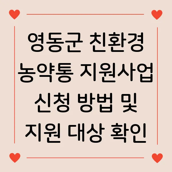 영동군청 농정과 친환경농업팀(☎ 043-740-3463)으로 문의하시면 친절하게 안내받으실 수 있습니다. 망설이지 말고 지금 바로 문의하세요!
