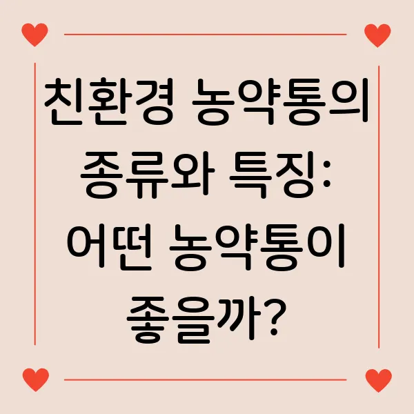 친환경 농약통의 종류와 특징: 어떤 농약통이 좋을까?