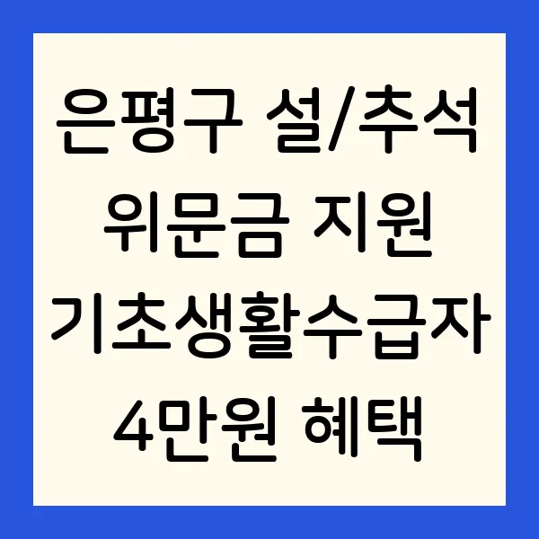 기초생활수급자 분들께 희소식! 은평구에서 설/추석 명절을 따뜻하게 보내시도록 위문금을 지원해 드립니다. 4만 원의 위문금 으로 풍성한 명절 맞이하세요! 지원 대상, 신청 방법, 지급 시기 등 자세한 정보를 확인하고 혜택을 놓치지 마세요! #은평구 #위문금 #기초생활수급자 #설날 #추석 #복지