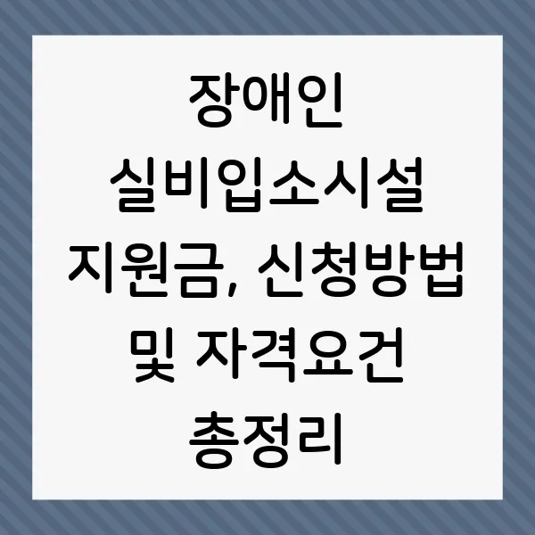 장애인 실비입소시설 지원금, 궁금하신가요? 중위소득 이하 등록 장애인이라면 누구나 신청 가능! 시설 입소를 통해 재활, 의료, 사회적응 훈련 등 다양한 서비스 지원 혜택을 받아보세요. 지금 바로 자격요건, 신청방법, 지원내용 등 핵심 정보를 확인하고, 장애인의 자립과 사회 통합을 위한 첫걸음을 내딛으세요! 본문에서는 2025년 기준 최신 정보를 바탕으로 지원금 제도를 상세히 안내합니다.
