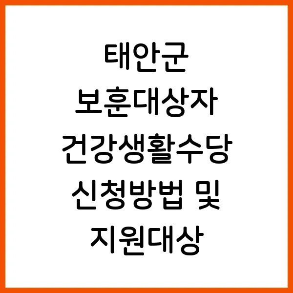 국가를 위해 헌신하신 태안군의 보훈대상자 여러분께 든든한 지원을 약속드립니다! 경제적 부담 완화와 건강 증진을 위한 태안군 보훈대상자 건강생활수당! 지금 바로 신청하세요! 지원 대상, 신청 방법, 지원 내용, 그리고 꼭 알아야 할 추가 정보까지, 이 포스팅 하나로 모든 것을 해결해 드립니다. 더 건강하고 행복한 삶, 태안군이 함께합니다.