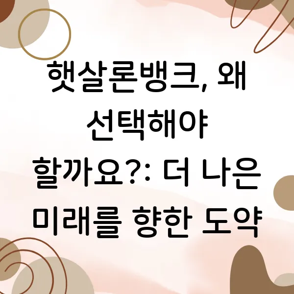 햇살론뱅크, 왜 선택해야 할까요?: 더 나은 미래를 향한 도약