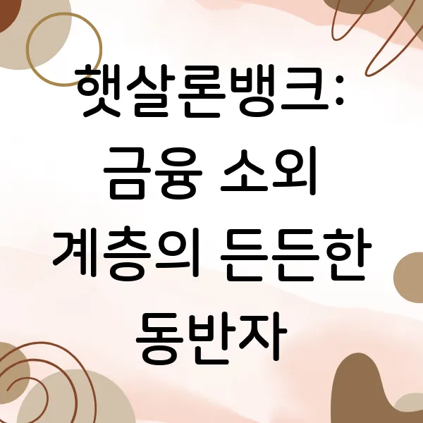 햇살론뱅크: 금융 소외 계층의 든든한 동반자
