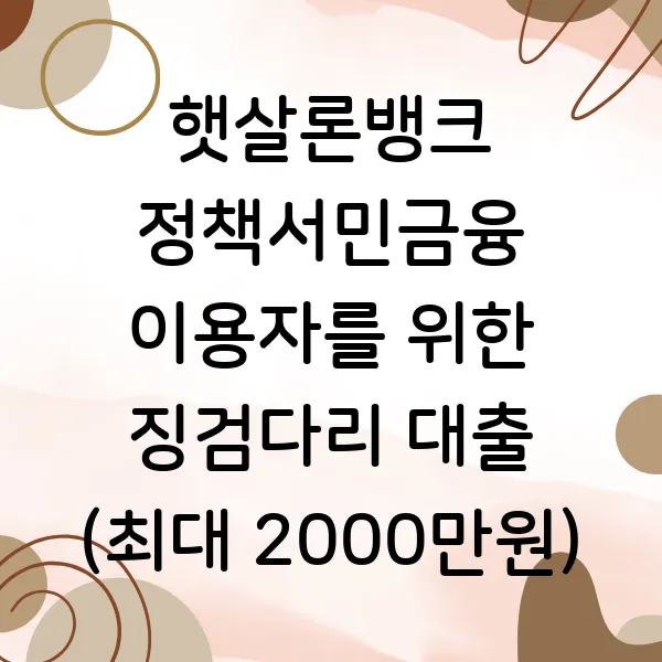 햇살론뱅크, 들어보셨나요? 정책서민금융 상품을 성실히 이용했지만, 은행 문턱은 여전히 높게만 느껴지는 분들을 위한 희소식입니다! 최대 2,000만원까지 지원되는 햇살론뱅크 대출로 금융 사다리의 다음 단계로 도약하세요! 햇살론뱅크, 햇살론15, 햇살론17, 서민금융진흥원 등 핵심 키워드를 중심으로, 본 포스팅에서 자세한 내용을 알려드립니다. 지금 바로 확인해보세요!