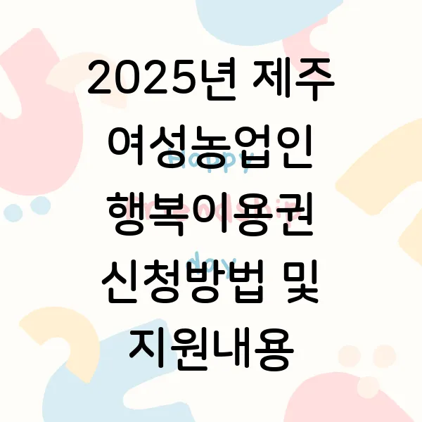 제주 여성농업인 여러분, 농사일에 지친 몸과 마음을 달래줄 희소식! 2025년 제주 여성농업인 행복이용권 지원 사업이 드디어 시작됩니다! 문화생활, 자기 계발, 건강 관리 등 다양한 분야에서 활용 가능한 20만원 상당의 포인트 혜택 을 절대 놓치지 마세요. 신청 방법, 지원 대상, 사용처까지 모든 정보를 이 글 하나로 완벽하게 정리했습니다. 지금 바로 확인하고 신청하세요!